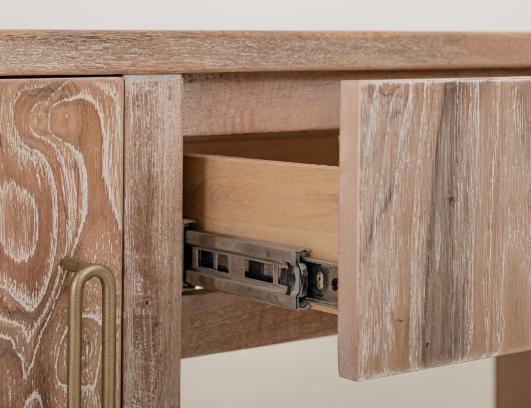 Our Balam collection is handcrafted from mango and teak wood. This simple yet stunning collection will bring an organic, modern touch to your space. This 80-inch TV stand becomes the heart of your living space, featuring two drawers and two doors for ample storage and a design that highlights the wood’s unique grain. Now enhanced with a fireplace insert, it offers not only style but also a cozy ambiance. Pair it with two matching piers to form a stunning wall unit that frames your space with harmony and sophistication. Every detail speaks of artistry, transforming your home into a sanctuary where modern design meets timeless warmth.