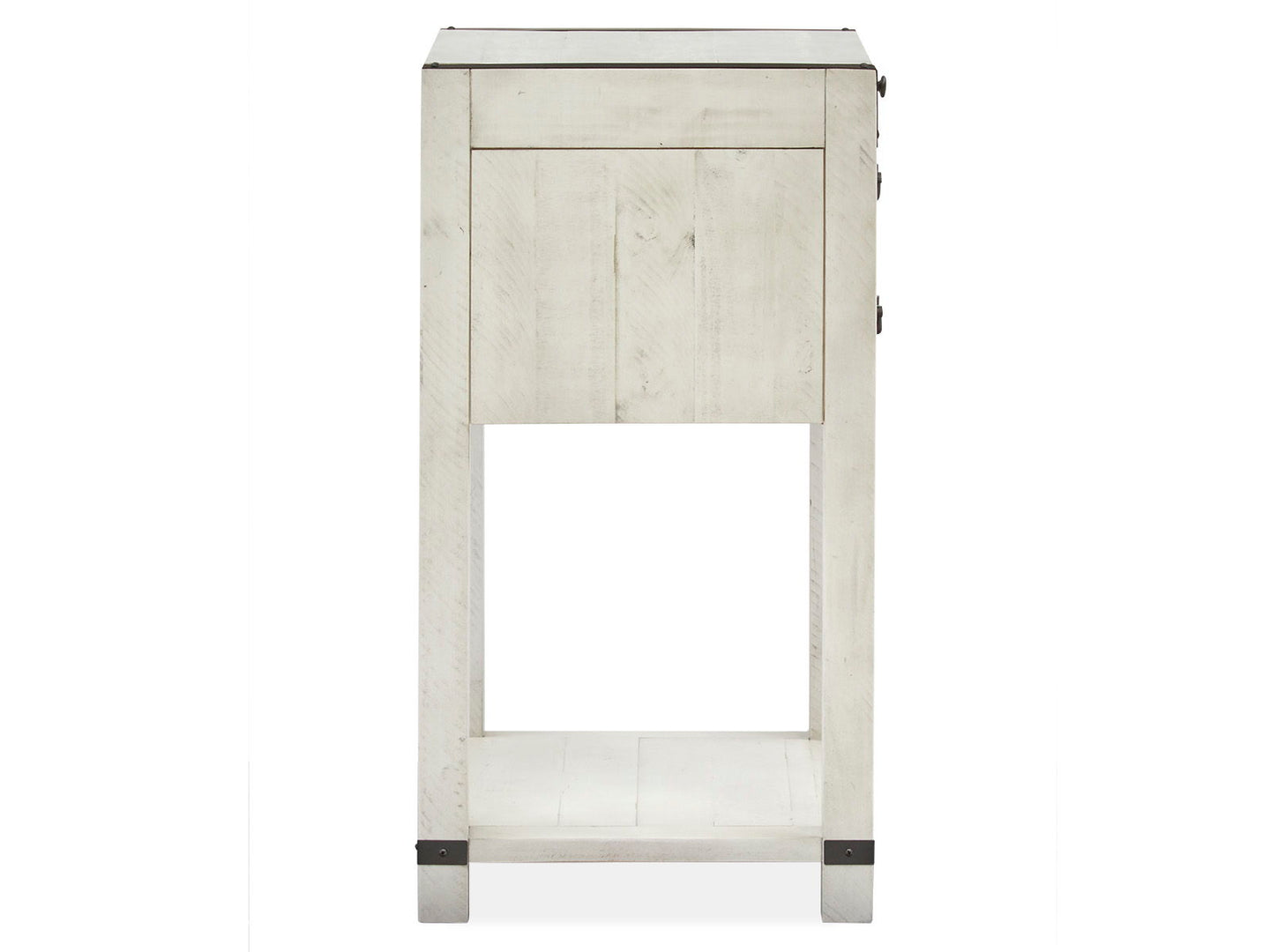 Is the perfect marriage of rustic charm and industrial edge and the sophisticated Chesters Mill Bedroom Collection would work in a loft in the mountains and in a home in the suburbs. The bright Alabaster finish on each frame — constructed of pine solids — is complemented by Aged Iron hardware for a look that’s modern and refined. Nine bed options are available in this collection and including three sizes of a knockout poster bed with an open canopy and as well as three sizes of a panel bed with optional storage underneath. The panel beds feature handcrafted metal detailing and providing additional handsome detail. Casegood pieces and including chests and nightstands and a dresser and a mirror and echo the industrial design with fresh forms highlighted with large bale pulls. A highlight is the unique Door Chest with sliding door and reminiscent of an old warehouse or barn and which is complete with two shelves and six drawers and wire management capabilities. The nightstand options — one open with two drawers and a pull-out shelf on the top and and one closed with three drawers — both feature on/off touch lighting control and wire management. This collection is also available in a warm Rustic Pine as well as a Weathered Charcoal finish and providing even more design options. Choose Chesters Mill for a modern and light industrial look and watch your space be transformed.