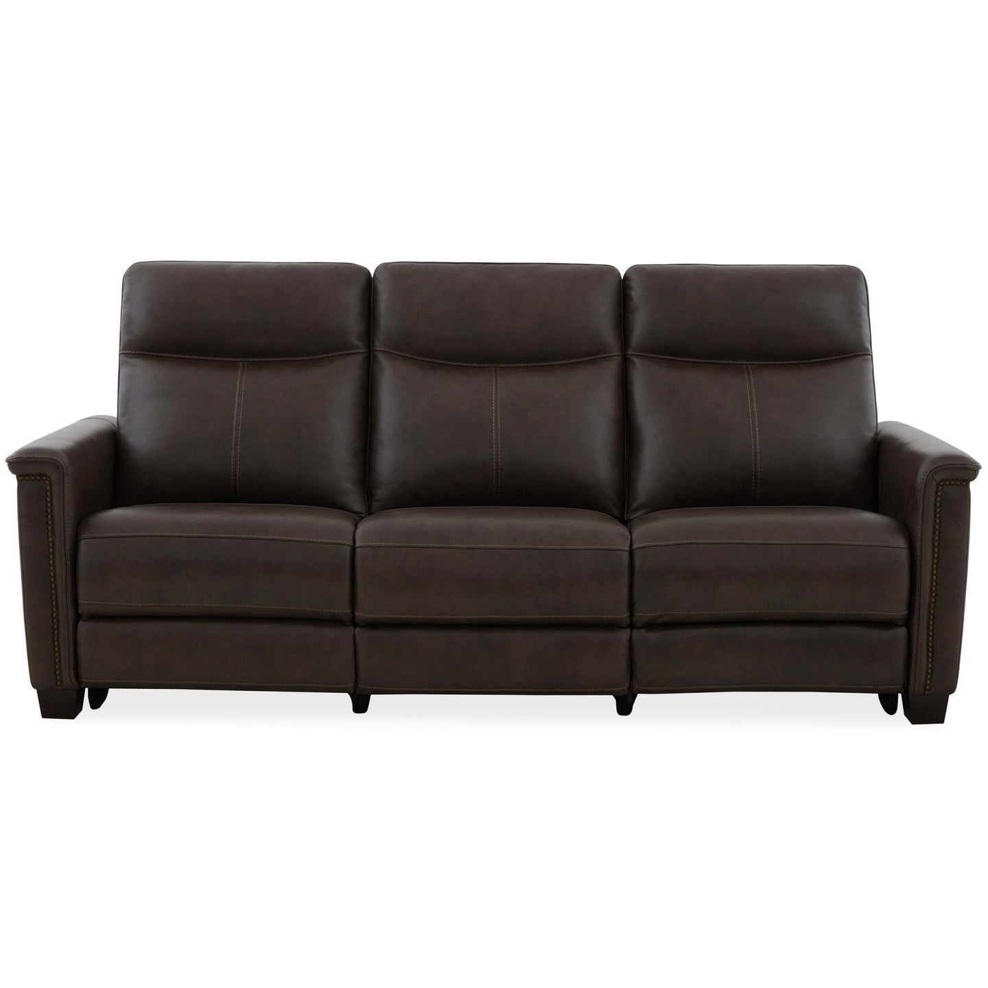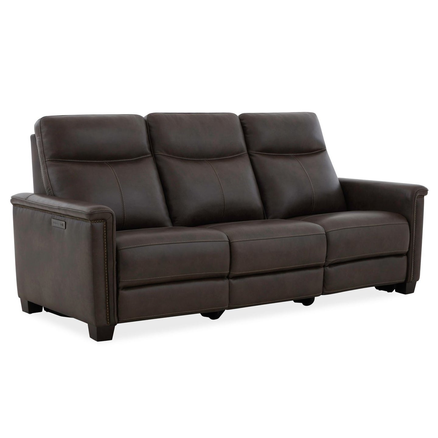 Treat yourself to high style and superior comfort with Crawford's triple power off-the-floor traditional design. Crawford includes power motion recline, a comfort-high back with power headrest, and power lumber support. Designed to emulate a stationary aesthetic, the silhouette features a fully finished back frame for 360-degree visual appeal. The slender flared arm design that is further embellished with head-to-head decorative nail trim creates an overall scale suitable for small living spaces. Additional features include a drop-down table in the center back of the sofa with a hard surface, cup holders, and USB & USB-C charging ports. Crawford is available in a selection of semi-aniline leather/match applications with heavy grain texture and subtle two-tone coloration that's finished for active family environments. Let Crawford become the focal point of your living space, where relaxation meets modern technology in perfect harmony.