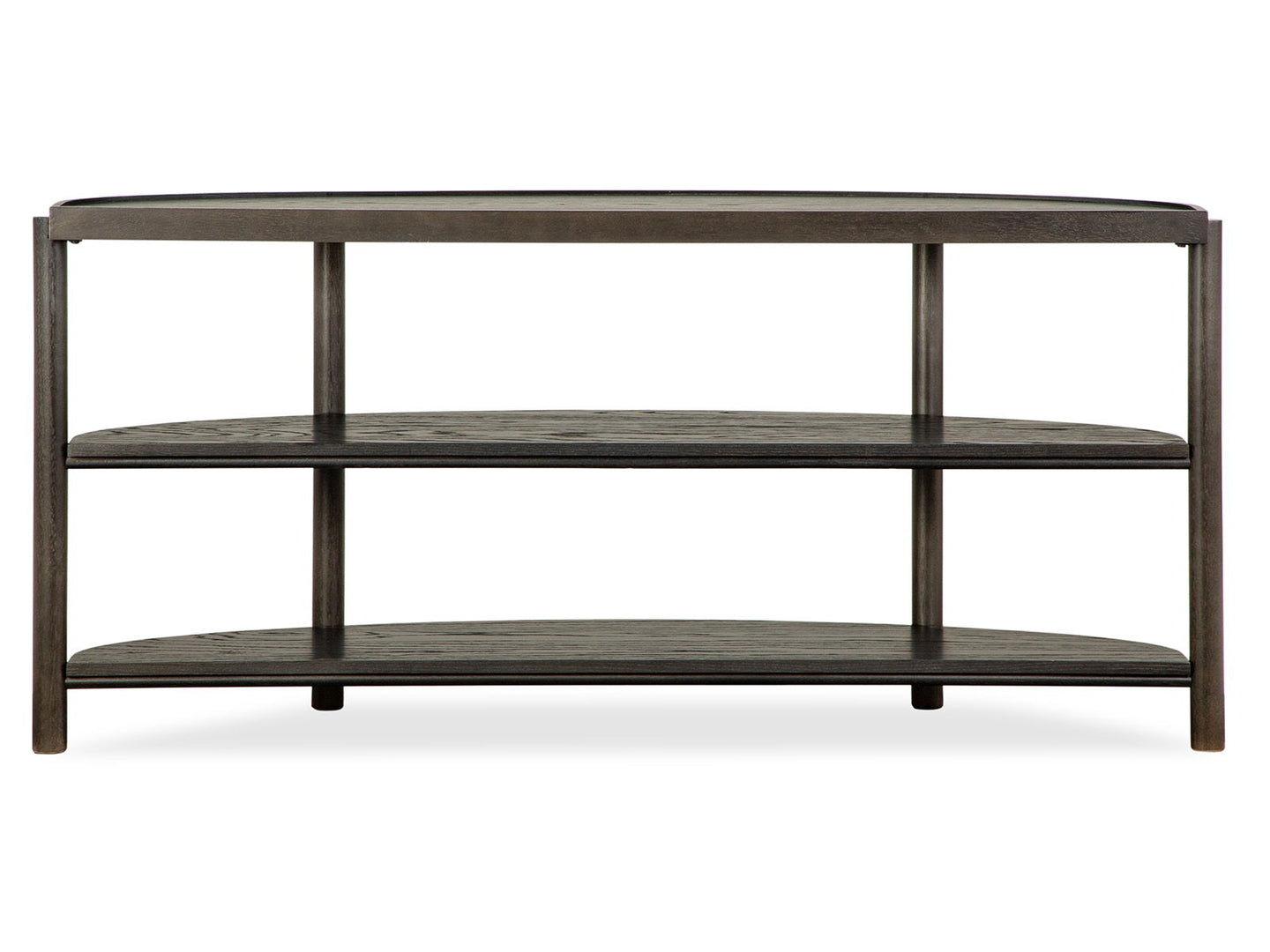 Create an interior with modern organic style by incorporating tables from the Hadleigh collection. Naturally curvaceous shapes and a smooth Coffee Bean finish over oak veneers distinguish these designs and establish the group's casually elegant vibe. Hadleigh is thoughtfully scaled to fit in both large and small living spaces while providing storage and display functionality. Its handsome character includes details such as matching wood hardware, shaped bottom shelves, and a nesting Cocktail Table that can be used as one or two pieces. Multiple table shapes and sizes ensure this minimalist-inspired collection will integrate seamlessly with any seating area while adding signature style.