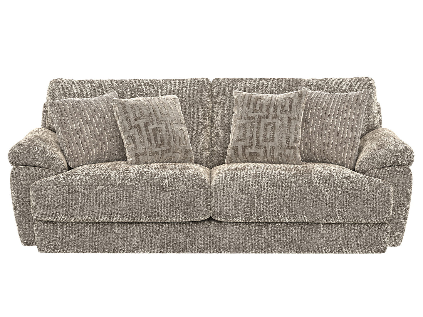 Jaden is a large two-seater design with contemporary pillow-arms in a soft yet durable chenille fabric. With the ultimate comfort of our Cuddler Cushion, a variety of toss pillows in complementary colors complete the comfort package.