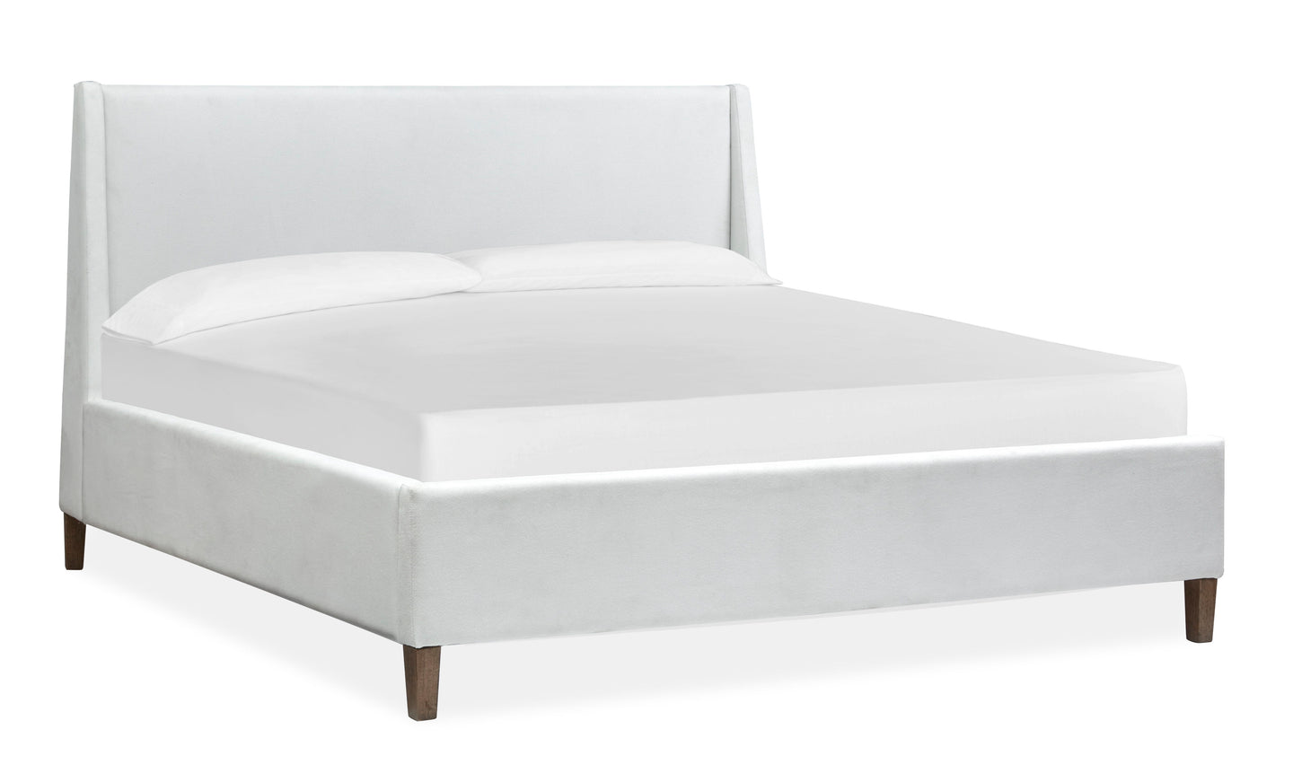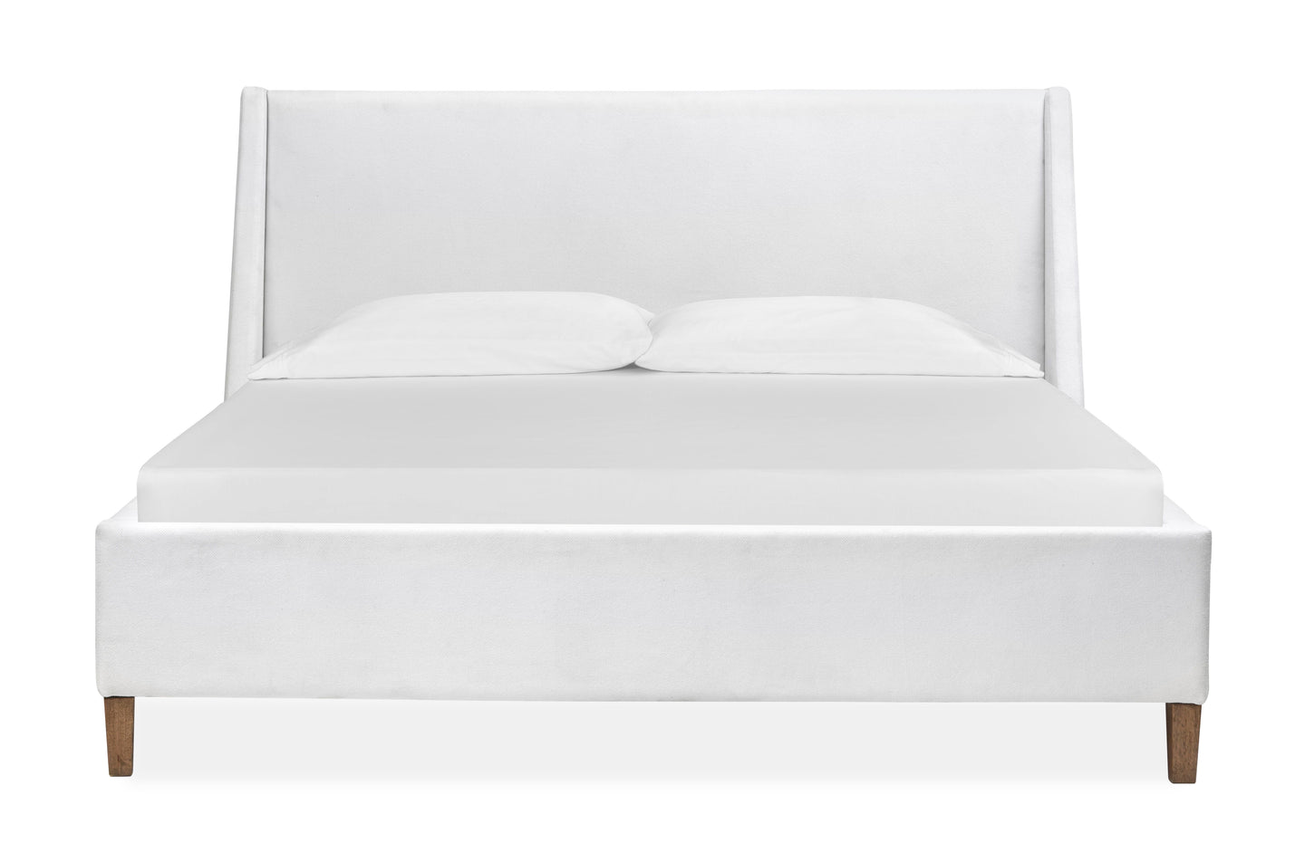 Lindon - Complete Queen White Upholstered Island Bed - Belgian Wheat