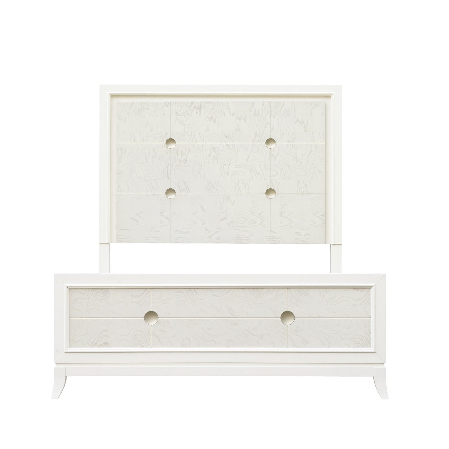 The Melrose Panel Bed with LED Lights marries luxurious elements with modern design, creating an atmosphere of comfort, style, and sophistication in your bedroom. The champagne-finished round insets are strategically placed within the ash swirl panels, adding a touch of glamour and contrast to the overall design. Final touches include a mitered frame in a lustrous white finish with LED lighting on the headboard. It offers a versatile backdrop for bedding, decor, or simply adapting your style according to your preferences over time. This bed is not just a place to sleep; it's a work of art that enhances the ambiance of the entire room.