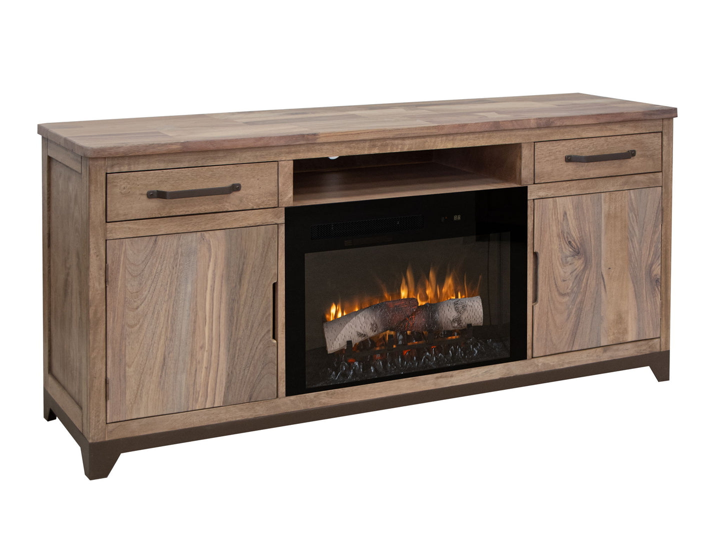 2 Drawer 2 Door Fireplace TV Stand. The Natural Parota collection exudes sophistication and timeless elegance, effortlessly enhancing the aesthetic of any room. Its striking presence is guaranteed to leave a lasting impression.