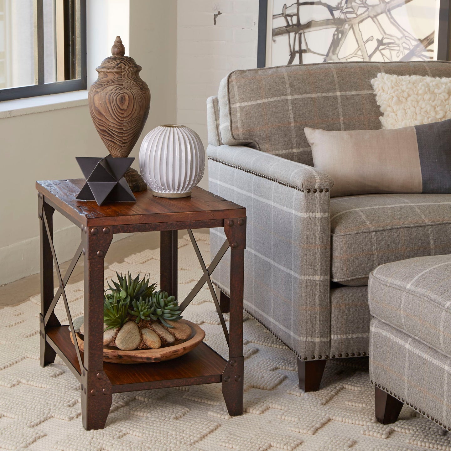 Artist's retreat meets Wall Street in the graphically styled Pinebrook. Contemporary accents like rustic iron legs, metal casters and rivet-edged metal supports reinforce the subtle character of the distressed natural pine.