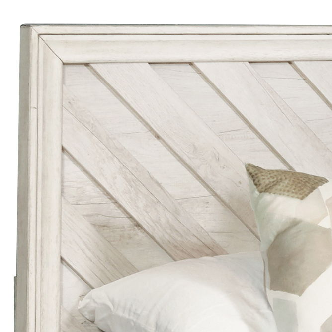 Riverwood has the look and feel of wood, executed in a durable resin laminate. Dark tops contrast with the lighter tones for interest and a modern farmhouse appearance. The headboard features a board-on-board design creating a rhythmic pattern. The collection works perfectly for the master bedroom, for a kid’s room or a welcoming guest room.