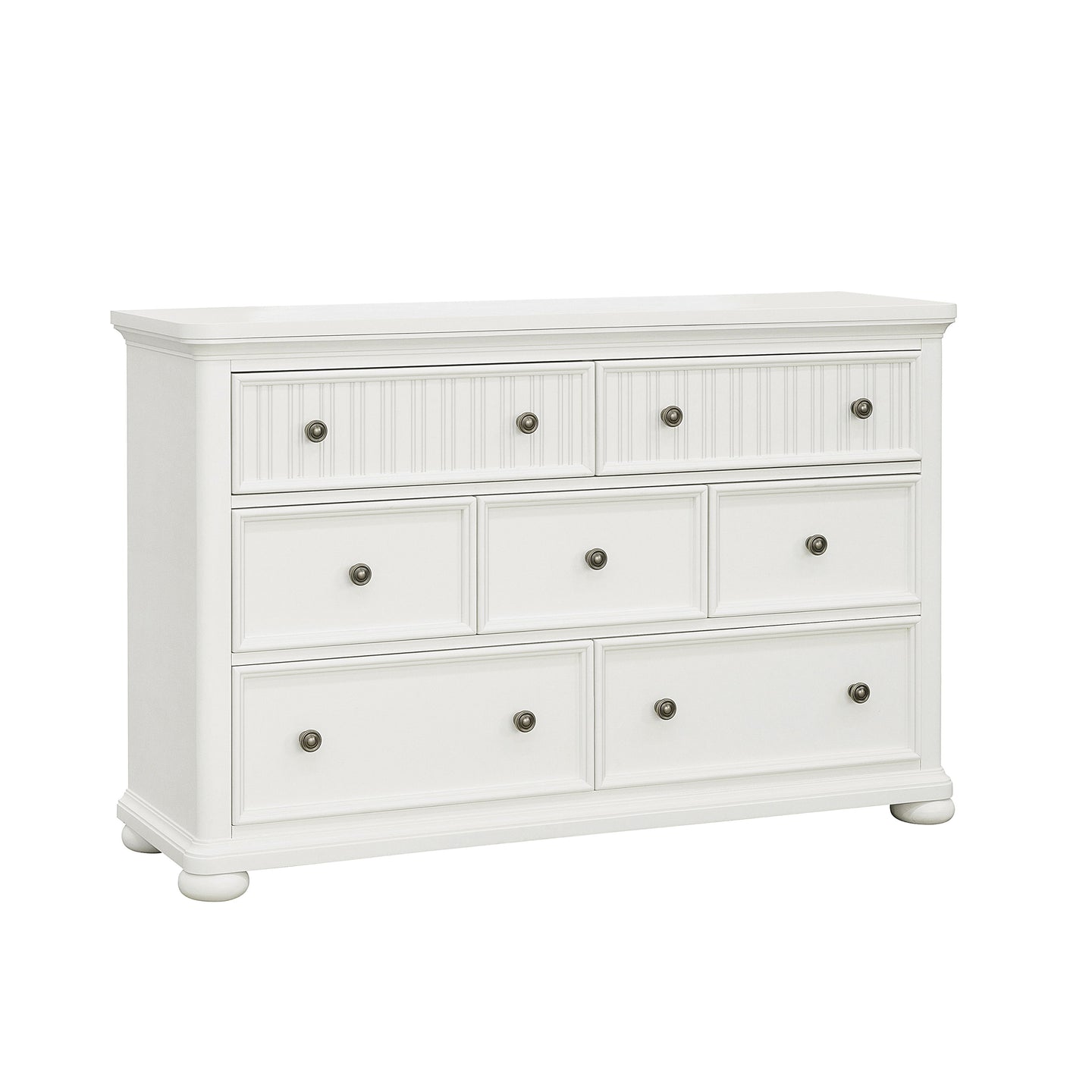 Add a lasting allure to your space with the Savannah Seven Drawer Dresser. Vertical planking details create a sense of texture and visual interest, while a crisp white finish and round bun feet provide a stylish foundation, offering a sleek and tailored appearance. Seven drawers in varying sizes provide ample storage space for your clothing, accessories, or any personal belongings, ensuring everything has its designated place. The transitional nature of the design ensures that it seamlessly blends with different decor schemes, while the casual, cottage-inspired vibe creates a welcoming and relaxing atmosphere.
