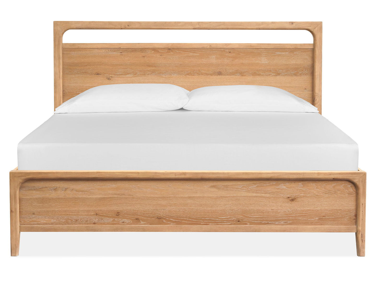 This bedroom collection represents the essence of effortless elegance. Its soft curves and rounded angles are easy on the eyes that gives a feeling of lightness and youthfulness. Finished in a soft shade of Butternut that accentuates its knotty white oak veneer patterns, these soothing designs feel modern yet timeless. Bold graphite hardware provides contrast to the relaxed finish and adds another layer of visual interest to the case pieces. Somerset bedroom offers the ultimate combination of beauty and style.