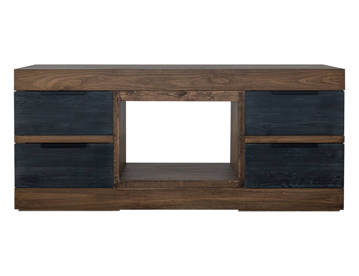 4 Drawer Fireplace TV Stand 70". If you're in search of a timeless and elegant piece of furniture, look no further than the Tuxedo collection. Crafted by our skilled artisans from solid, lightly distressed wood, this bicolor collection is destined to be the focal point of any room.