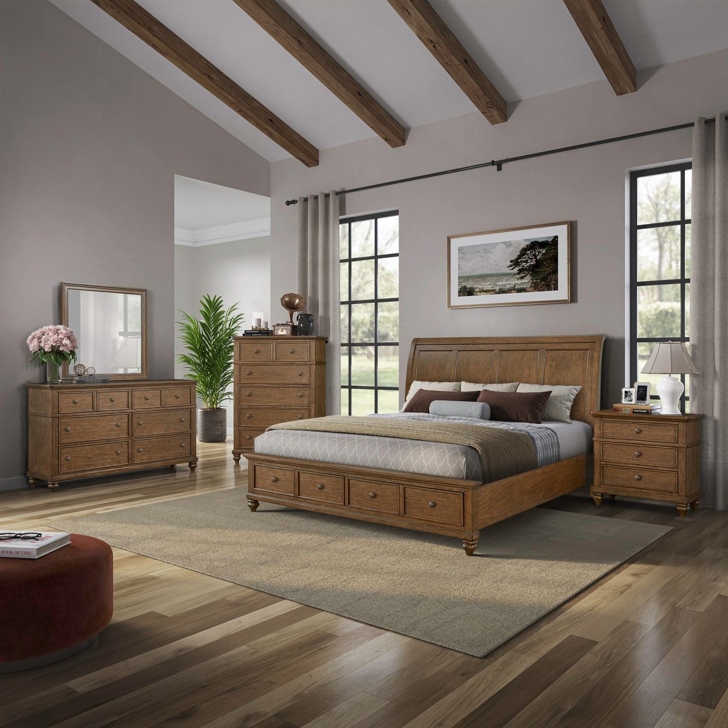 Twin Lakes - 4 Piece Bedroom Set (King Storage Bed, Dresser & Mirror, Chest) - Chestnut